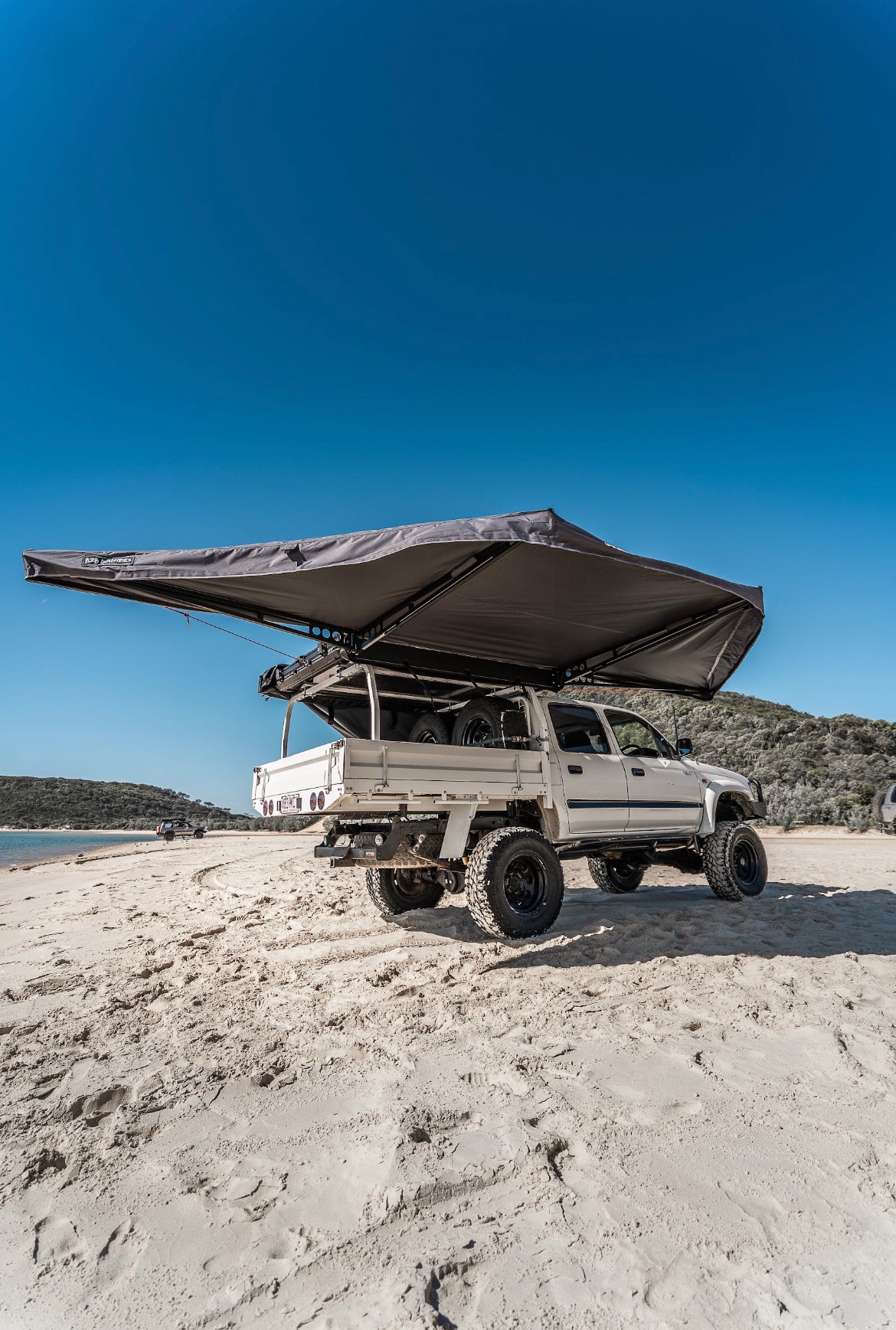 A 180 awning provides a large area of shade coverage down one side of the vehicle allowing you to enjoy days in the sun and not get burnt. Being lighter and cheaper than a 270, this awning suits smaller vehicles such as Utes and doesn't break the bank. It is waterproof so it will also keep you dry in rainy weather.