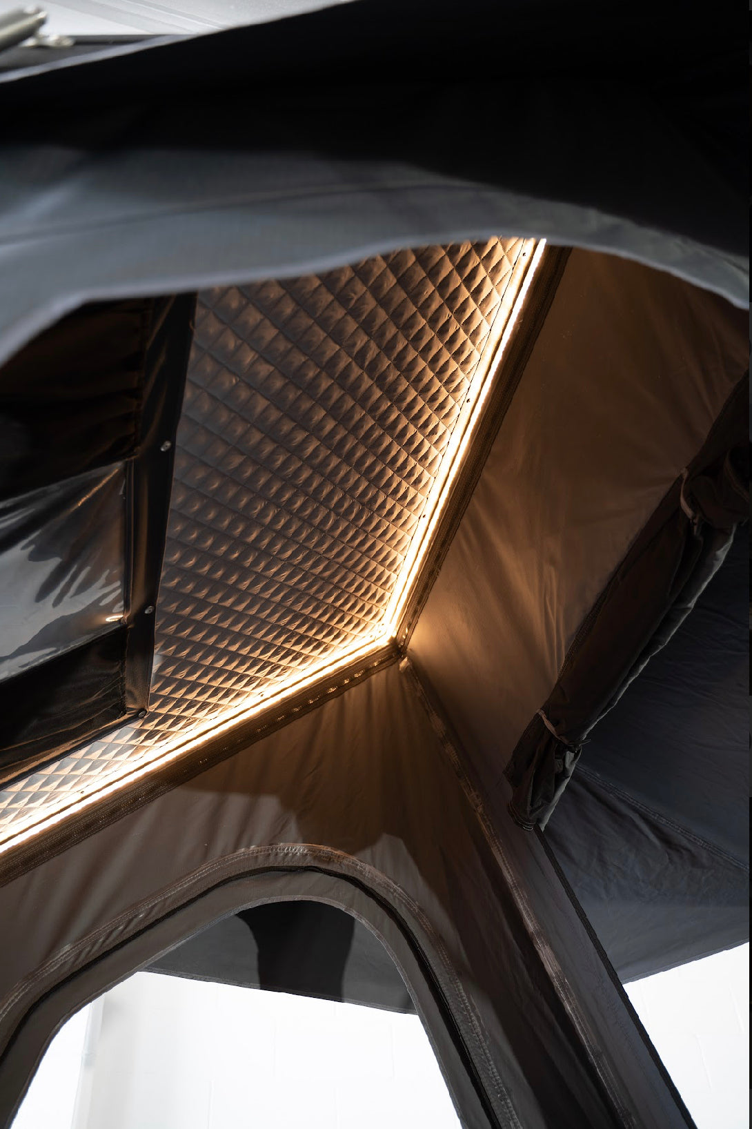 All our 1.3 Roof Top Tents come fitted with a 360 degree LED strip light and it connects straight to the 12v Panels USB sockets.